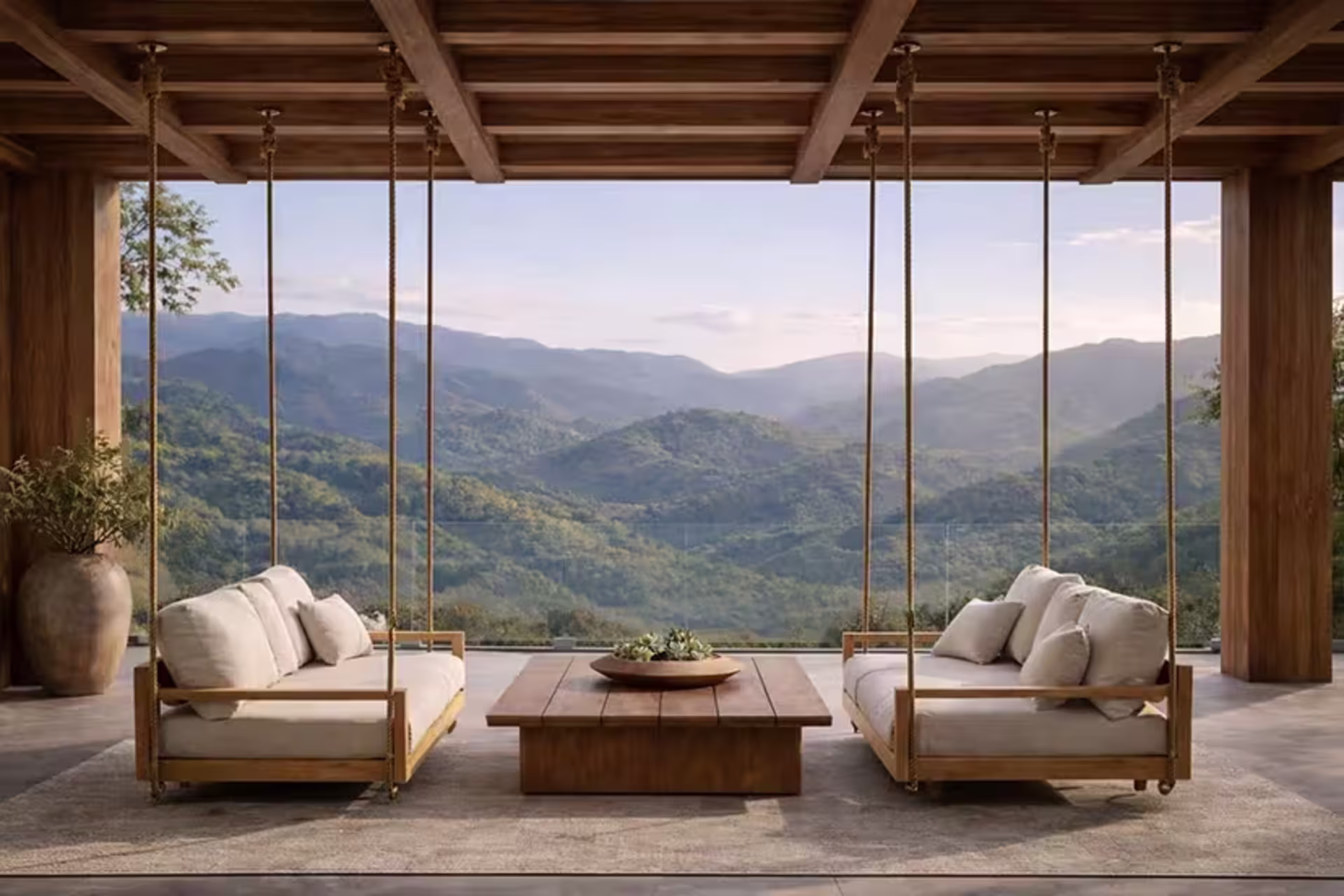 Luxury suspended furniture crafted from sustainable materials.