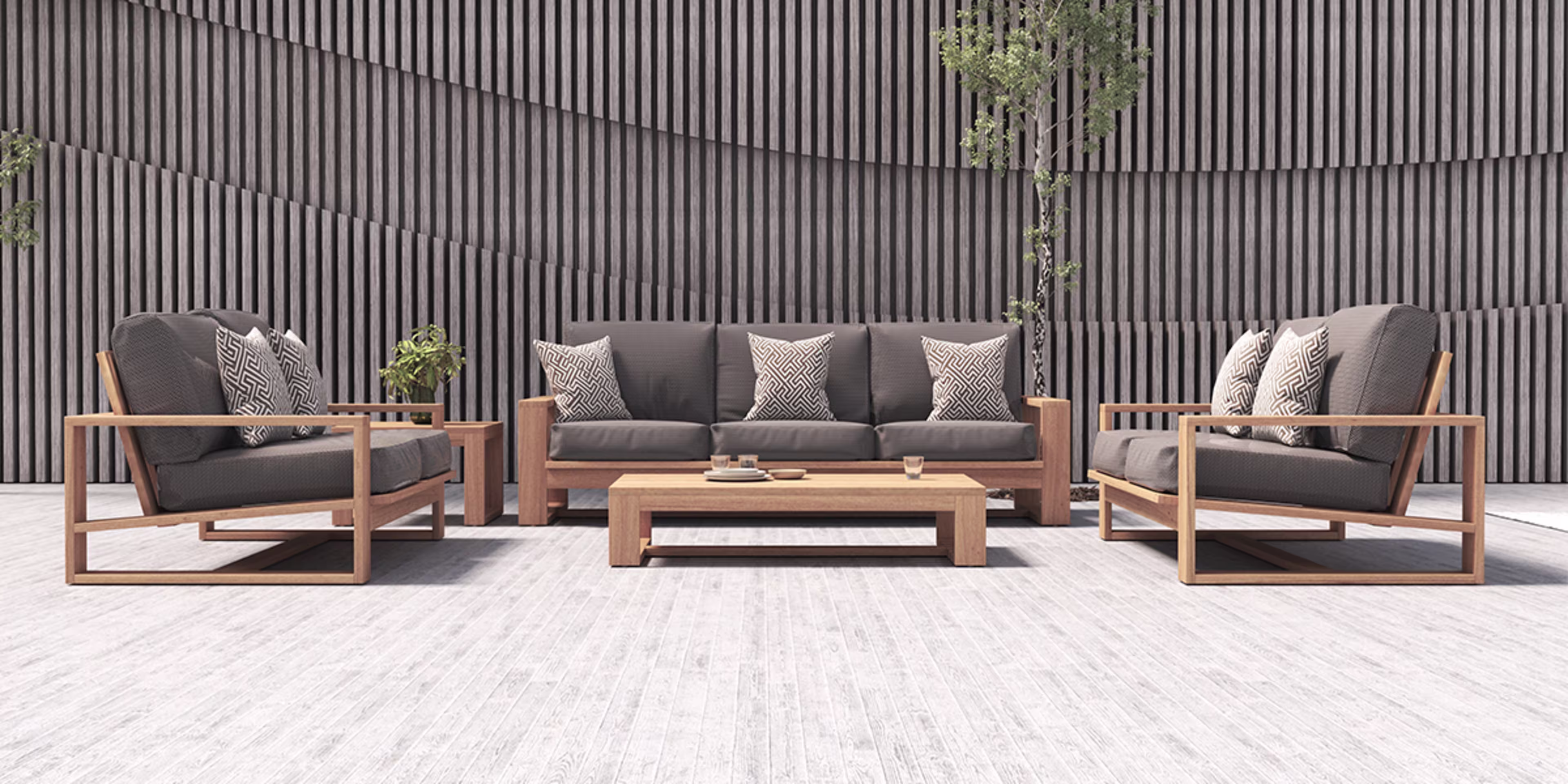 Handmade, contemporary outdoor furniture featuring Grade-A Indonesian teak.